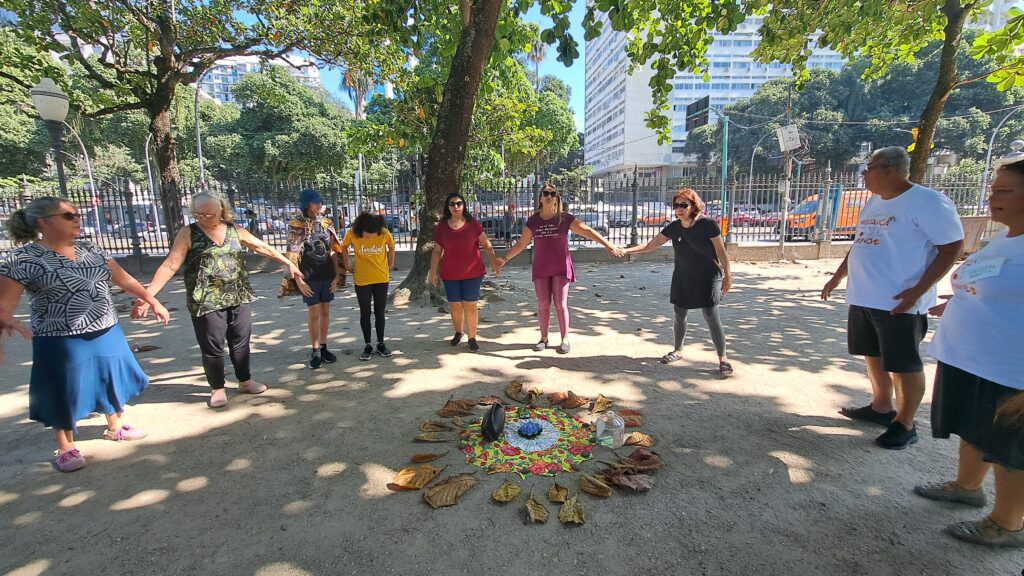 Jogos cooperativos, atividade artística, dança circular e piquenique colaborativo.